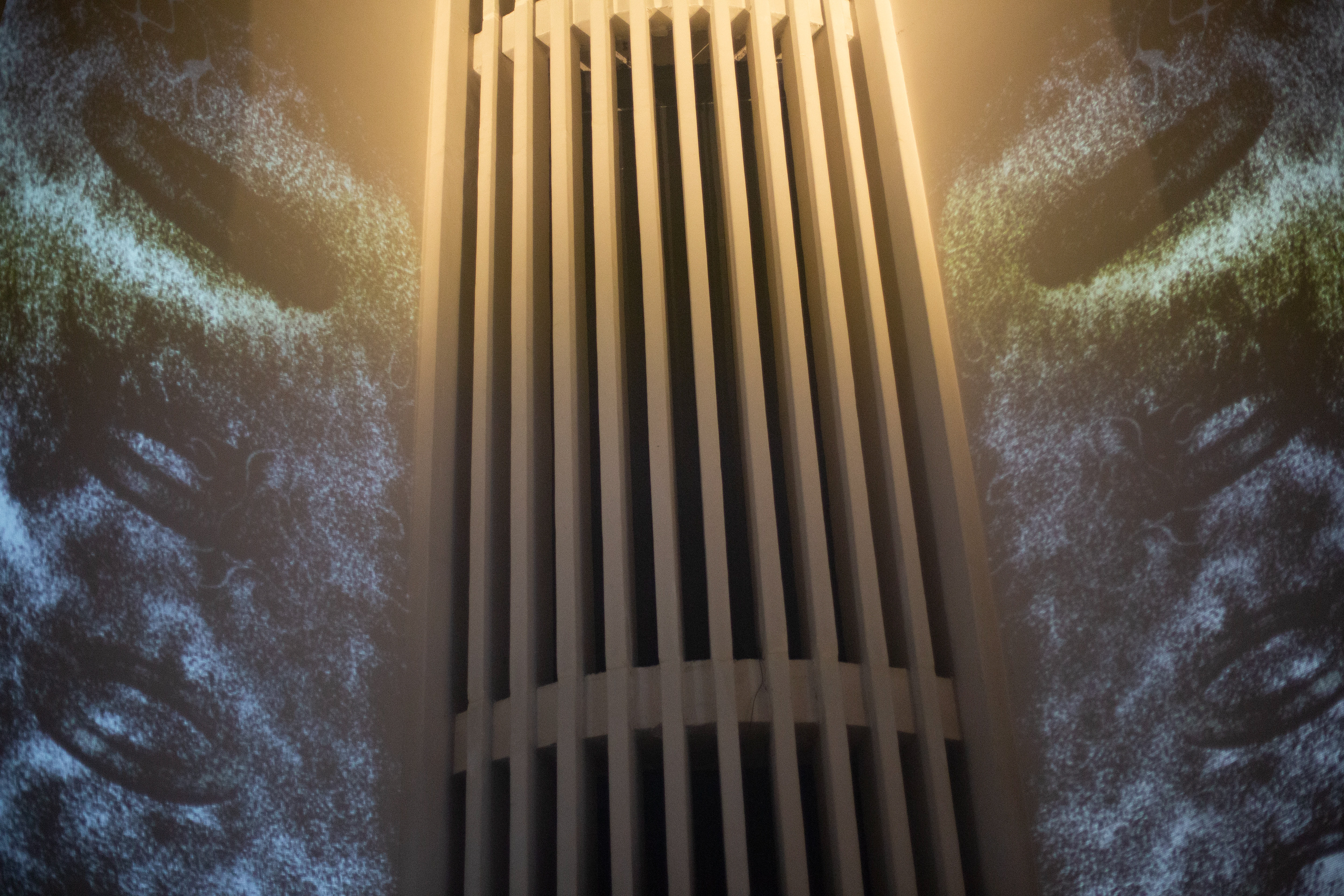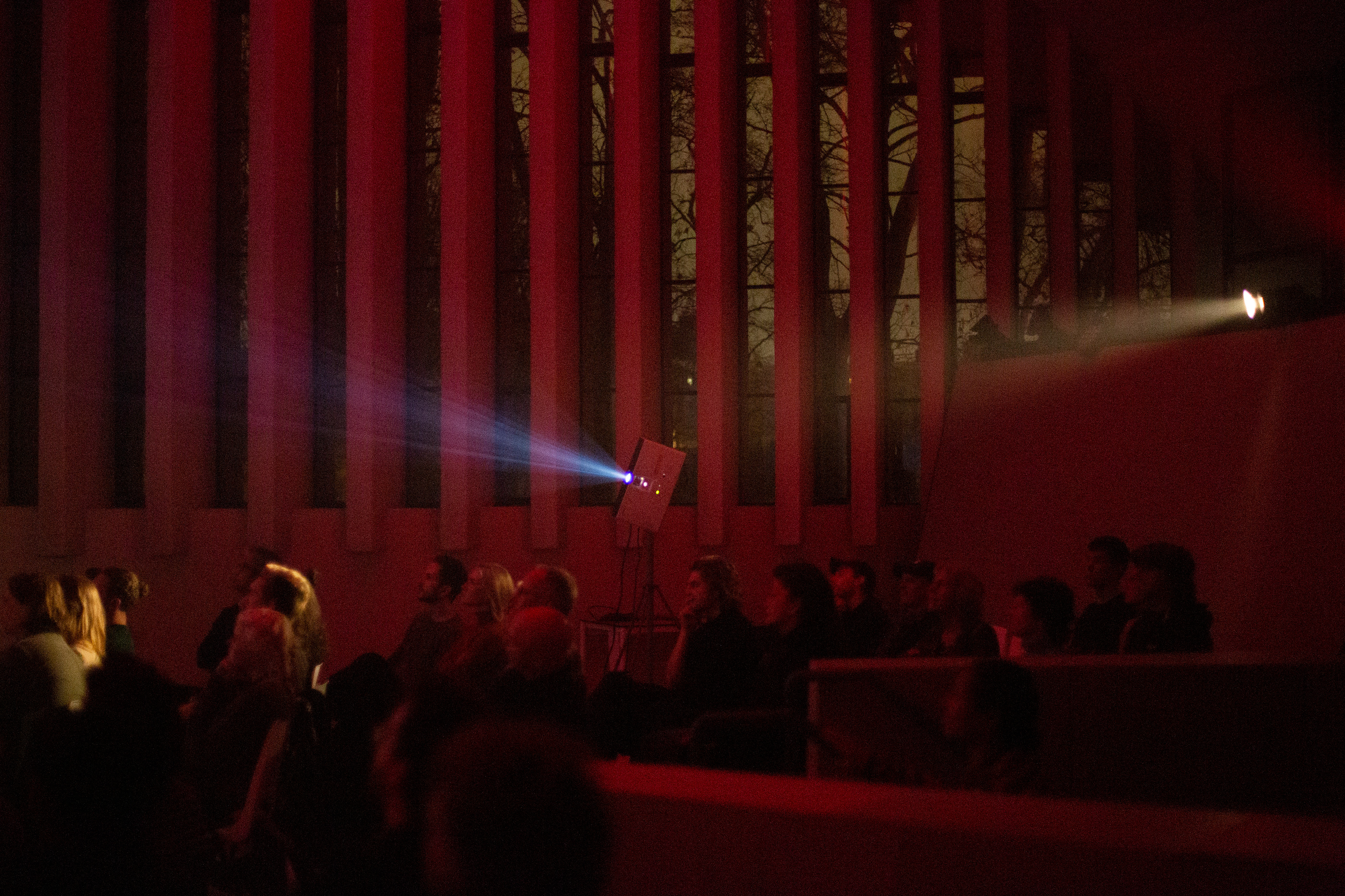 Audiovisual performance made for 'Tempel': A former conference building for the Esotoric School of the Theosophical Society in The Netherlands. Today 'Tempel' houses workplaces, and serves as a stage for artists.